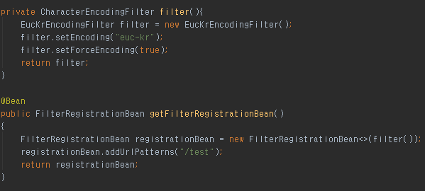 특정 URL만 UTF-8이 아닌 EUC-KR로 바꿔 사용해야 하기때문에 특정 URL에만 동작하는 필터를 하나더 추가한다.