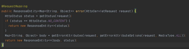 ErrorController -> DefaultErrorAttributes 에서는
